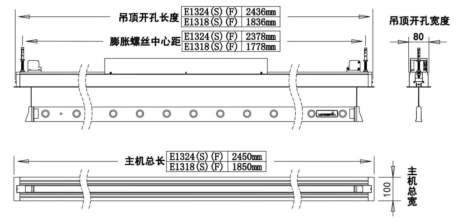 | E1318 | 1836mm | 2颗膨胀螺丝的中心距 |